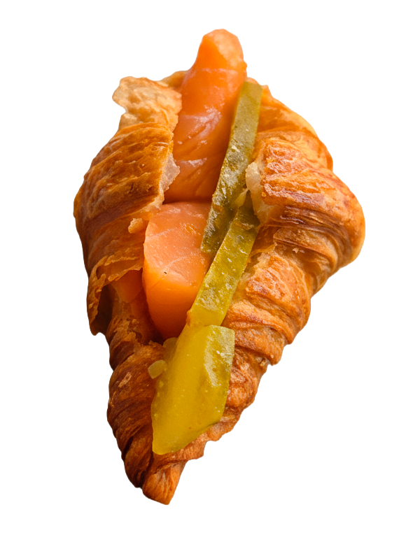 Mini cruasán salado de mantequilla con salmón marinado y pepinillo crujiente