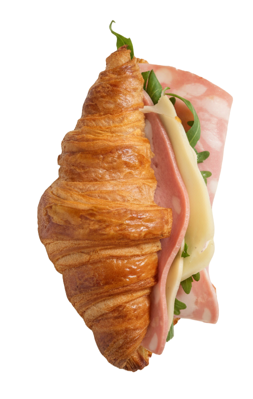 Mini cruasán relleno de mortadela y rúcula fresca
